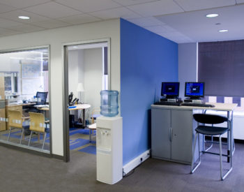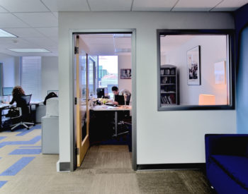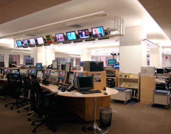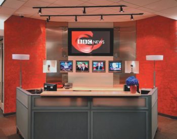 State-of-the-art television and radio studio renovation for the Washington, DC Bureau of the British Broadcasting Corporation (BBC). The project included eleven soundproof studios with Ecophon panels, soundproof doors, insulated glass, sound insulated mechanical system and gantries for overhead viewing.